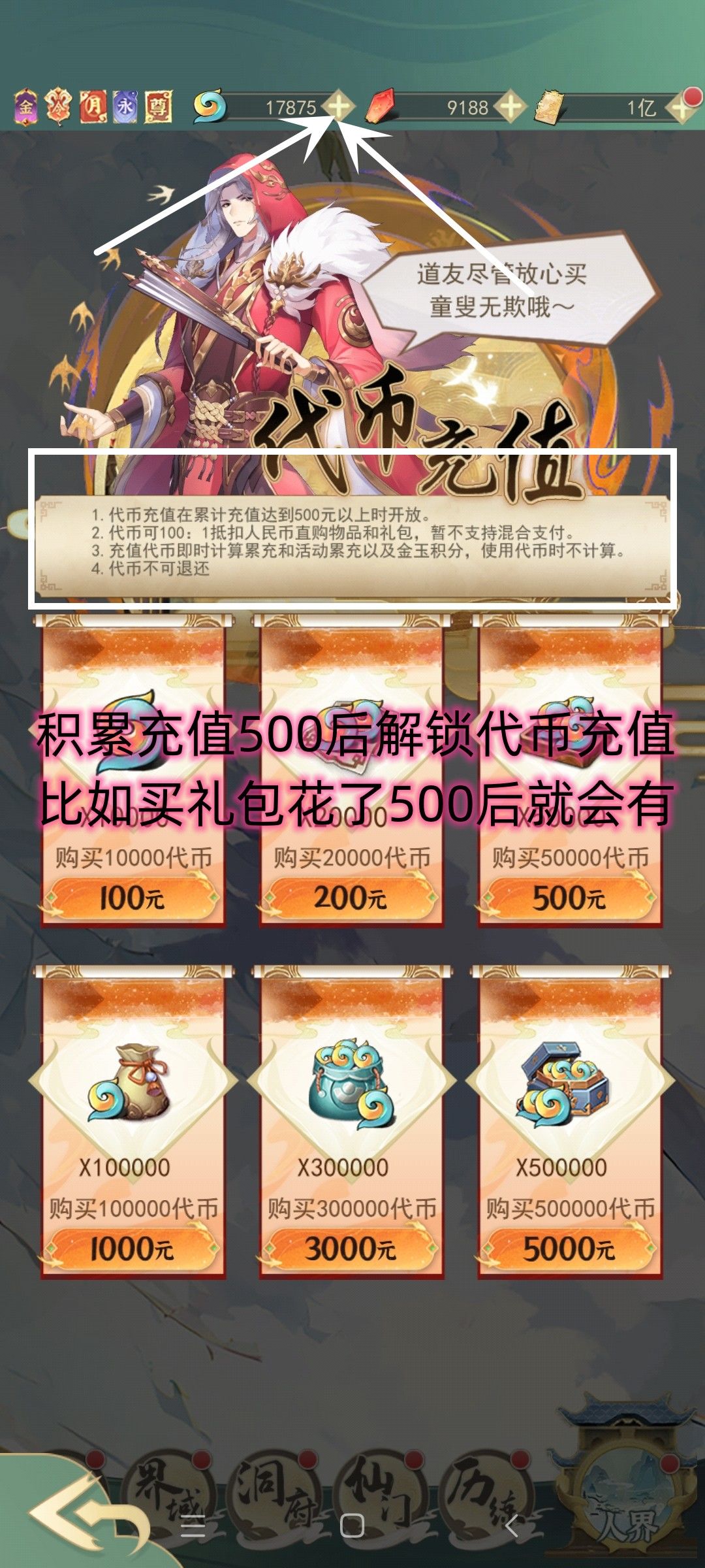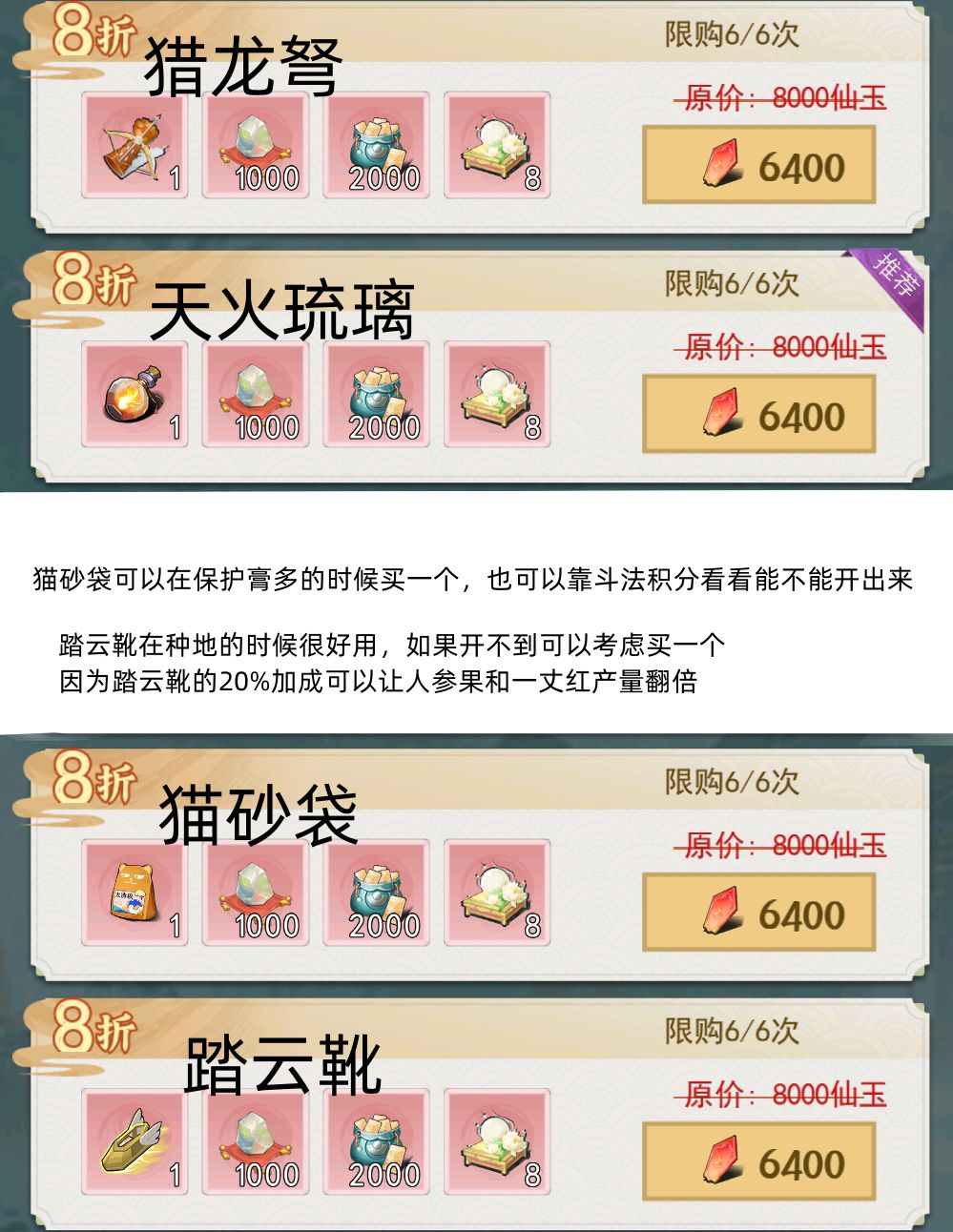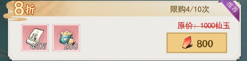 (凑仙玉消费可以考虑天火琉璃,猎龙弩,法相礼包,法相礼包如果月和周的都买完了,就在节日礼包里买)
