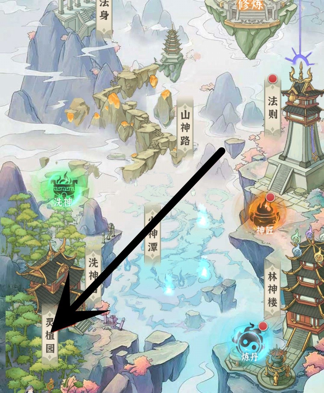 来了来了,重点来了,大乘开放农场,在灵界洞府左下角就可以看见