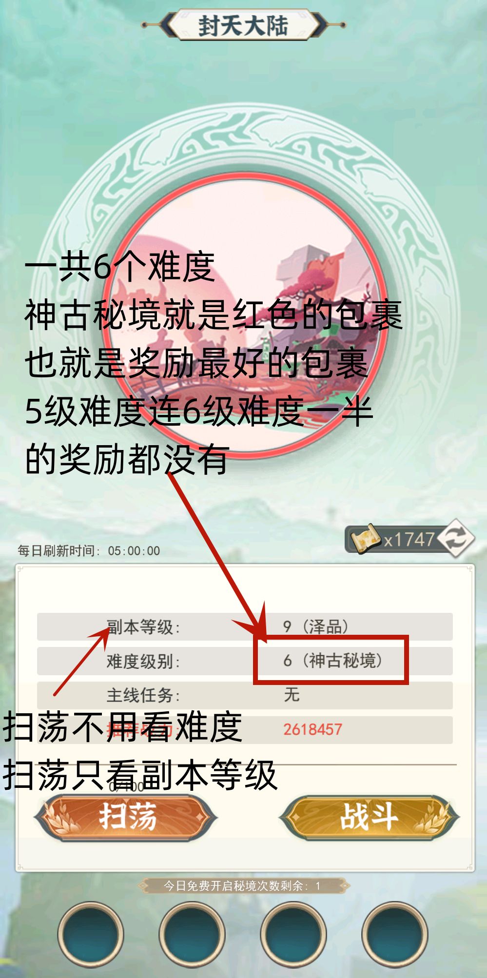魔界开启的时候记得扫荡,用200仙玉的扫荡,不要用仙玉+灵石