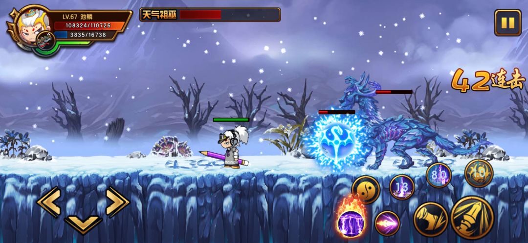 冬雪严寒:当生命低于70%时,耳朵上的青蛇幻化出一个雪蛇图腾,雪蛇会召唤大雪,将冻结全场敌人1.5秒并造成伤害