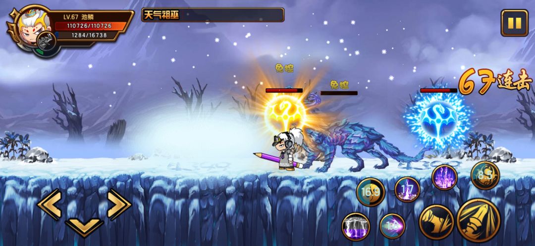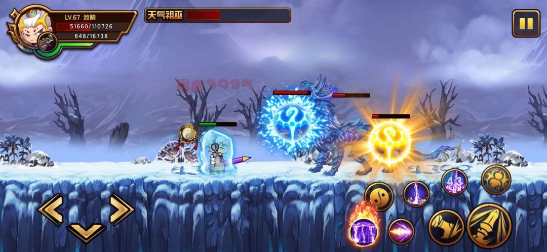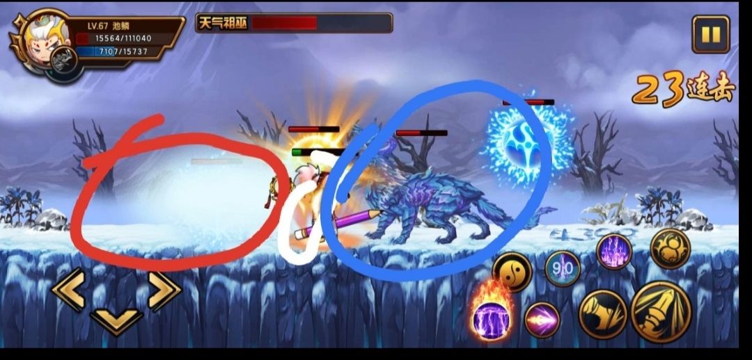 萌新易暴毙处:严寒图腾冻住之后又被吸了,这里就要注意雪的位置,雪快落地时才会冻住你,我们只需要计算是否要吸你,如果利爪用奔雷枪拉开距离,如果要吸你躲不过去的话提前用法宝保命。