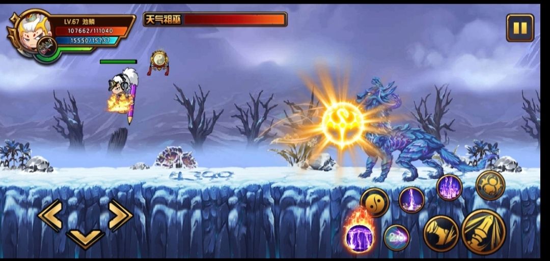 秋风为虐:从远端刮过一阵旱风,吸入BOSS口中,被刮到的敌人会造成大量伤害并减少法力