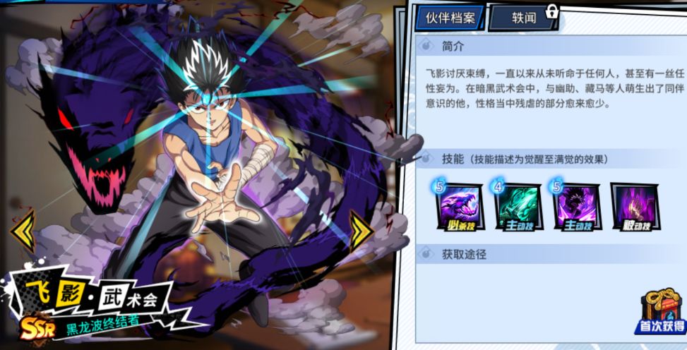 SSR飞影也人称大飞,得益高到爆的人气以及技能效果就是秀帅就完事,当然其实战效果实力也足以在当前版本列入T0队伍,大飞玩法和套路非常多变无论是聚集+大飞的一拳超人套路,还是纯咒术等;但需要温馨提示萌新玩家首先大飞是限定招募,同时大飞作为核心的队伍,建议是3觉(邪王炎杀剑概率真实伤害)或者5觉(吸收燃烧伤害加血)才上阵,因为3觉真伤极大限度提升了输出,而5觉就是一个续航优势