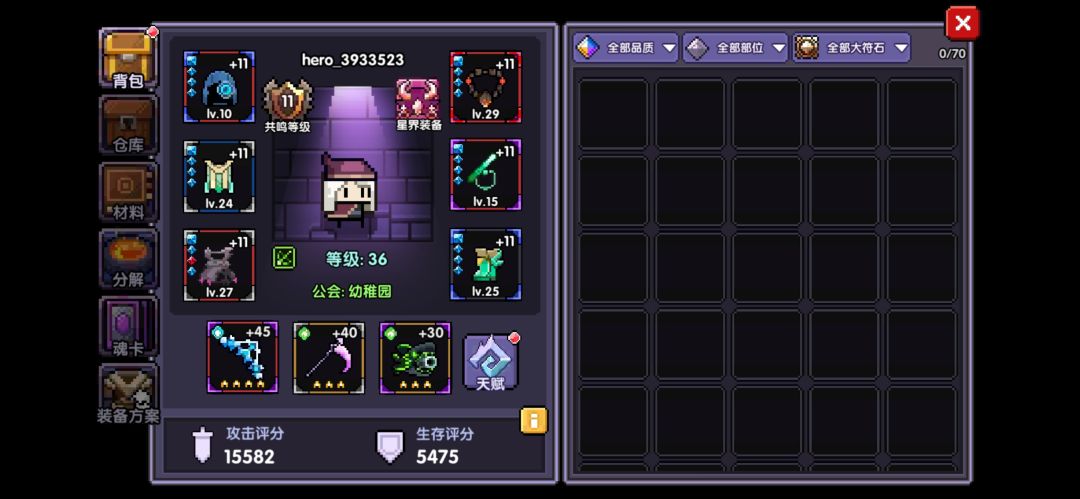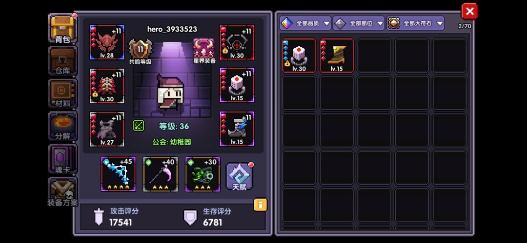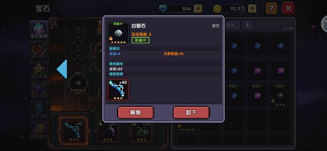 41关小秘境以及之后,关内就会掉落宝石,初期我们以白银石,苍蓝石,紫晶石为主,白银石掉落多,方便升星。