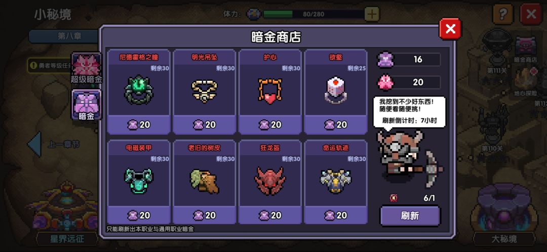 **要是装备一直无法成型,可以抽调体力打暗金房间,获取暗金币,在暗金商店-普通暗金里面购买