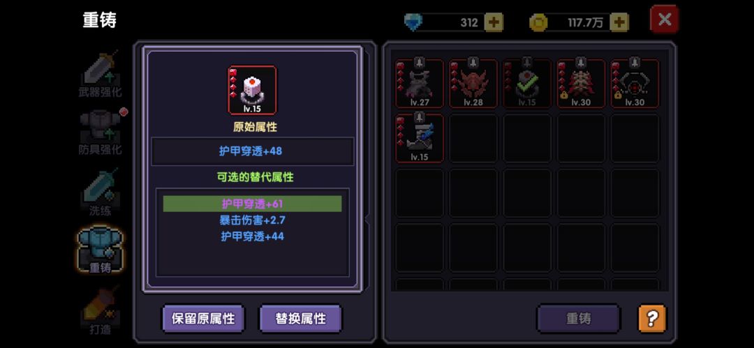 **遇到同色孔装备,但是属性不好,可以洗一下,以护甲穿透为第一标准
