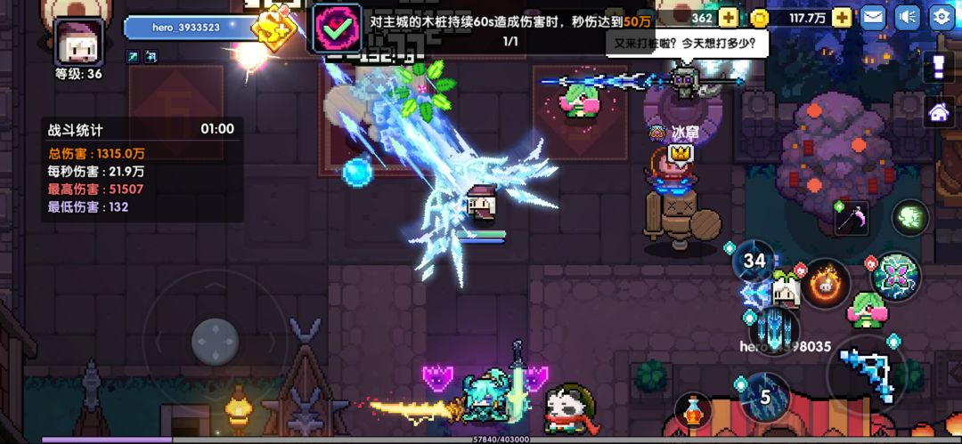 **如果技能【勇者•合体】【战凯•辉煌】没有刷到,那么可以在主城左边的木桩打桩一分钟,现在我们的秒伤肯定是超过10w的,一分钟之后,在成就领取奖励,有50个刷新币,然后我们在刷新商店刷新购买两个技能即可