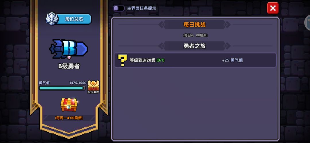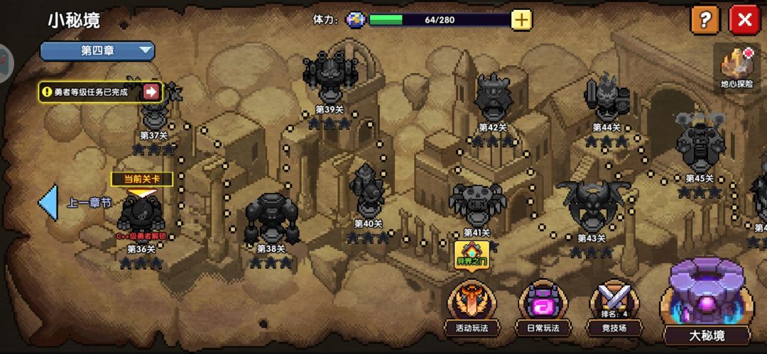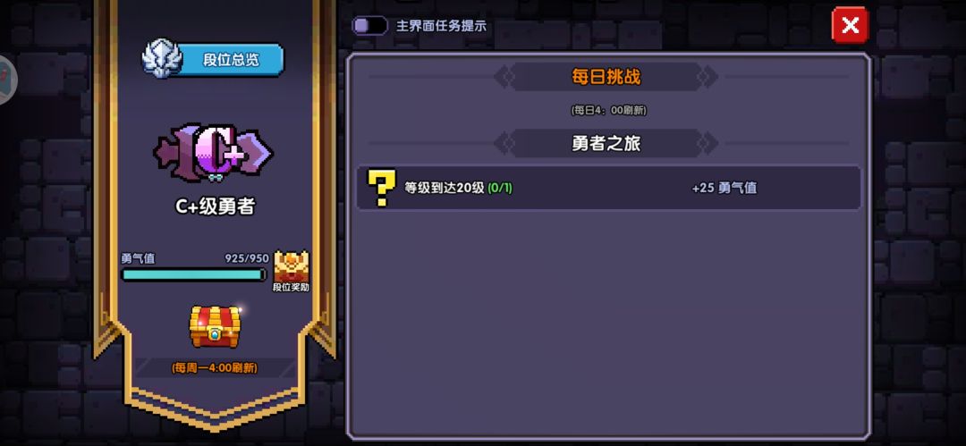 接下来就是跟着每日任务,新手100抽往后推关(打小秘境交错着打),提升勇者等阶就可以。