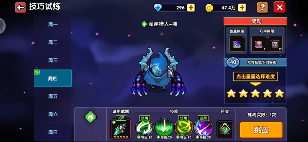 利用打完技巧试炼不领取宝箱,然后大退重进的小特性,第一天就可以开启5星,并拿到所有的首通奖励