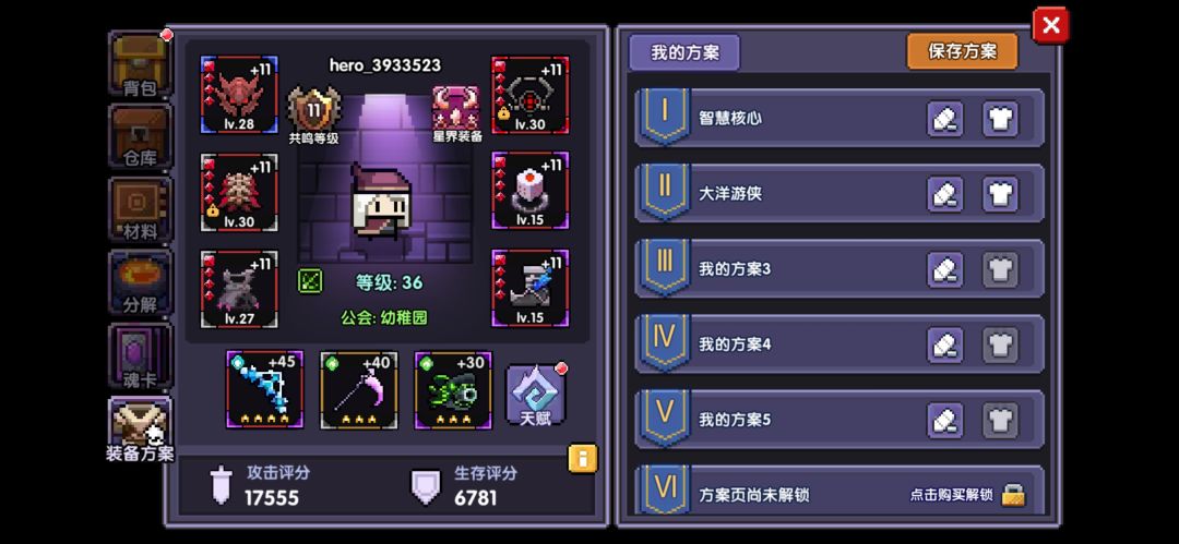 打造智慧核心之前,先在方案里面保存一下,因为后续我们依然需要大洋游侠来打水系和火系boss