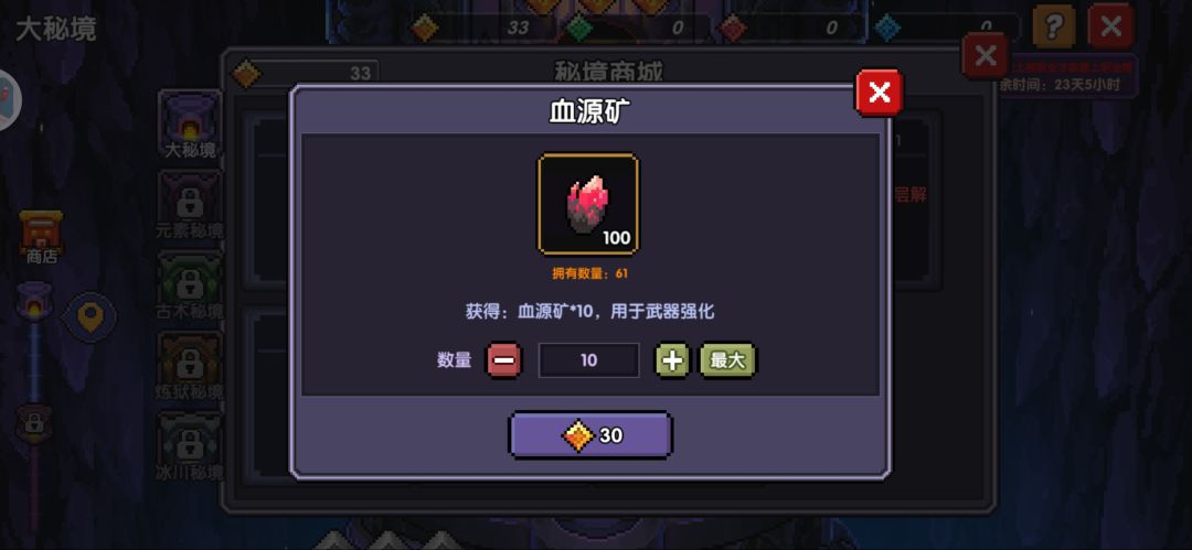 【小秘境50关,大秘境30层】