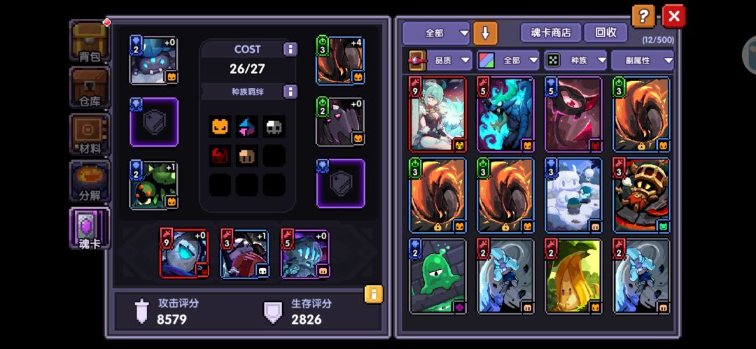 魂卡随便打打,可以把次数打完,然后凑点羁绊(人族/魔物/魔神)