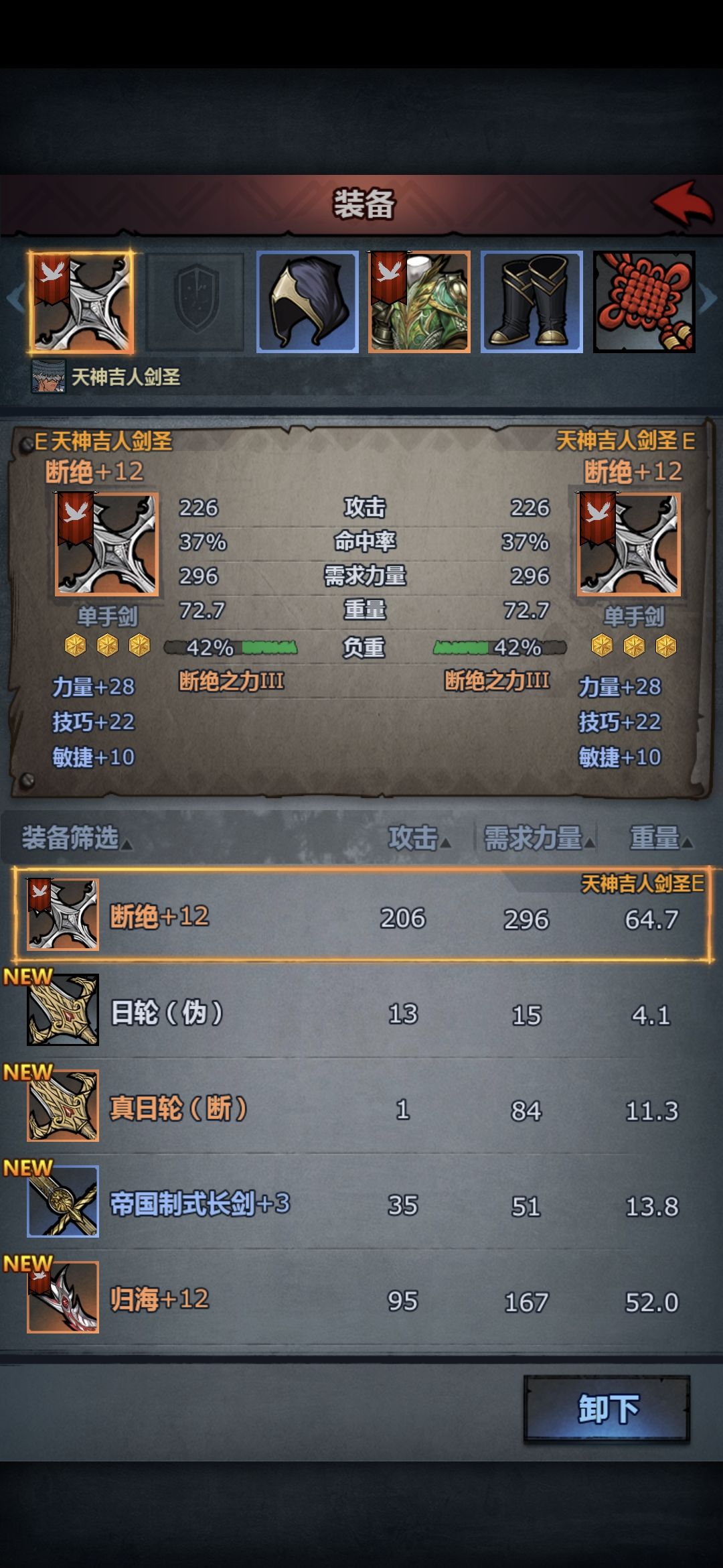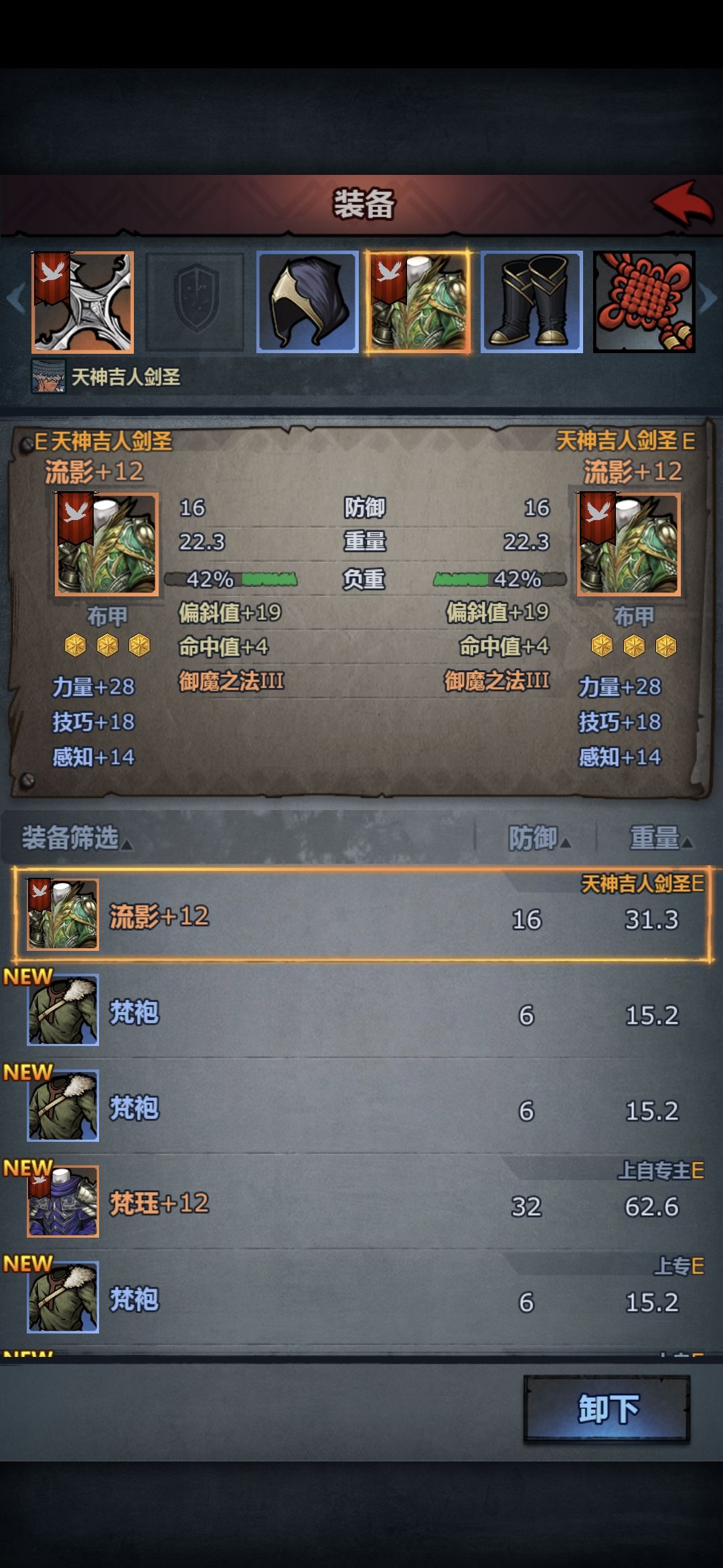 内宗剑圣:3级单手剑 1级移动甲