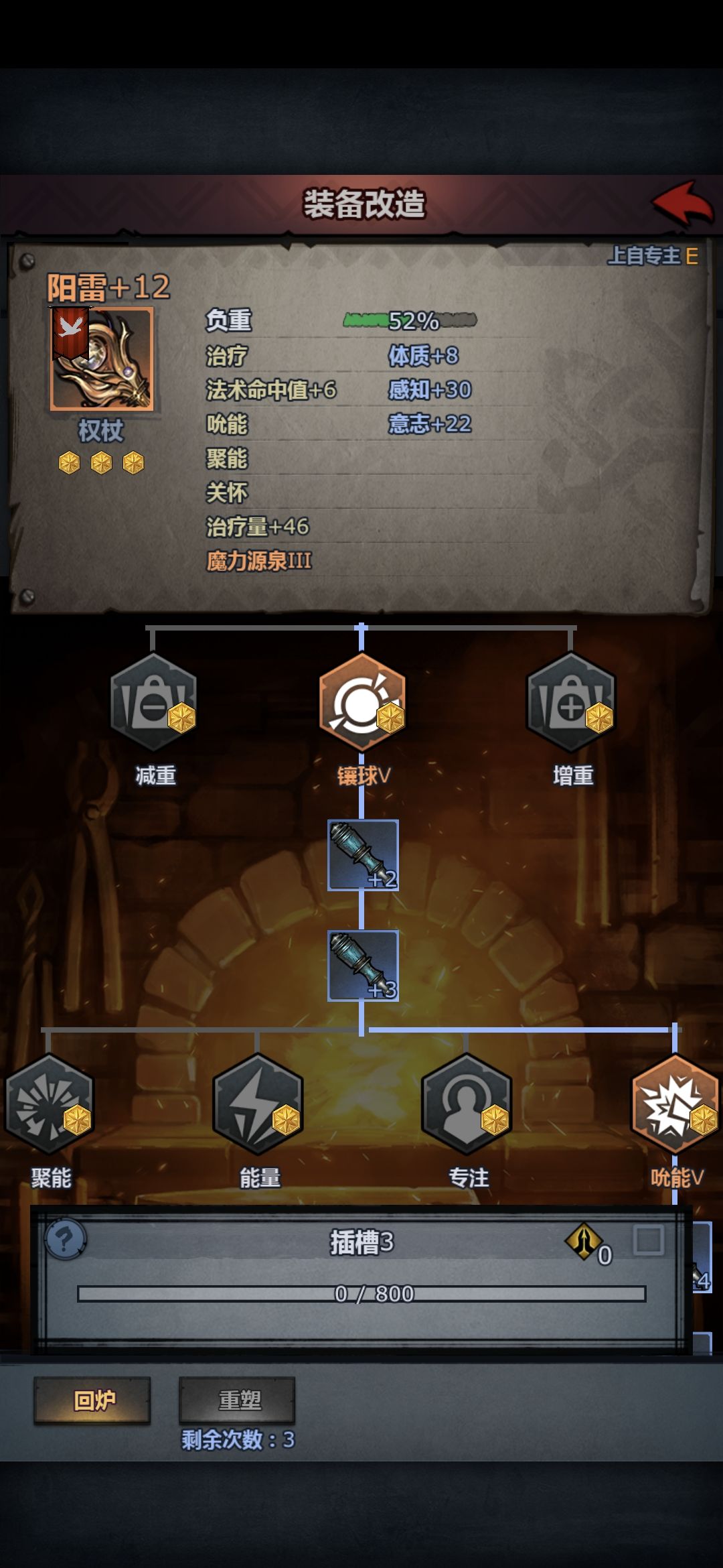 权杖改造路线 镶球—吮能—聚能。等级推荐满级