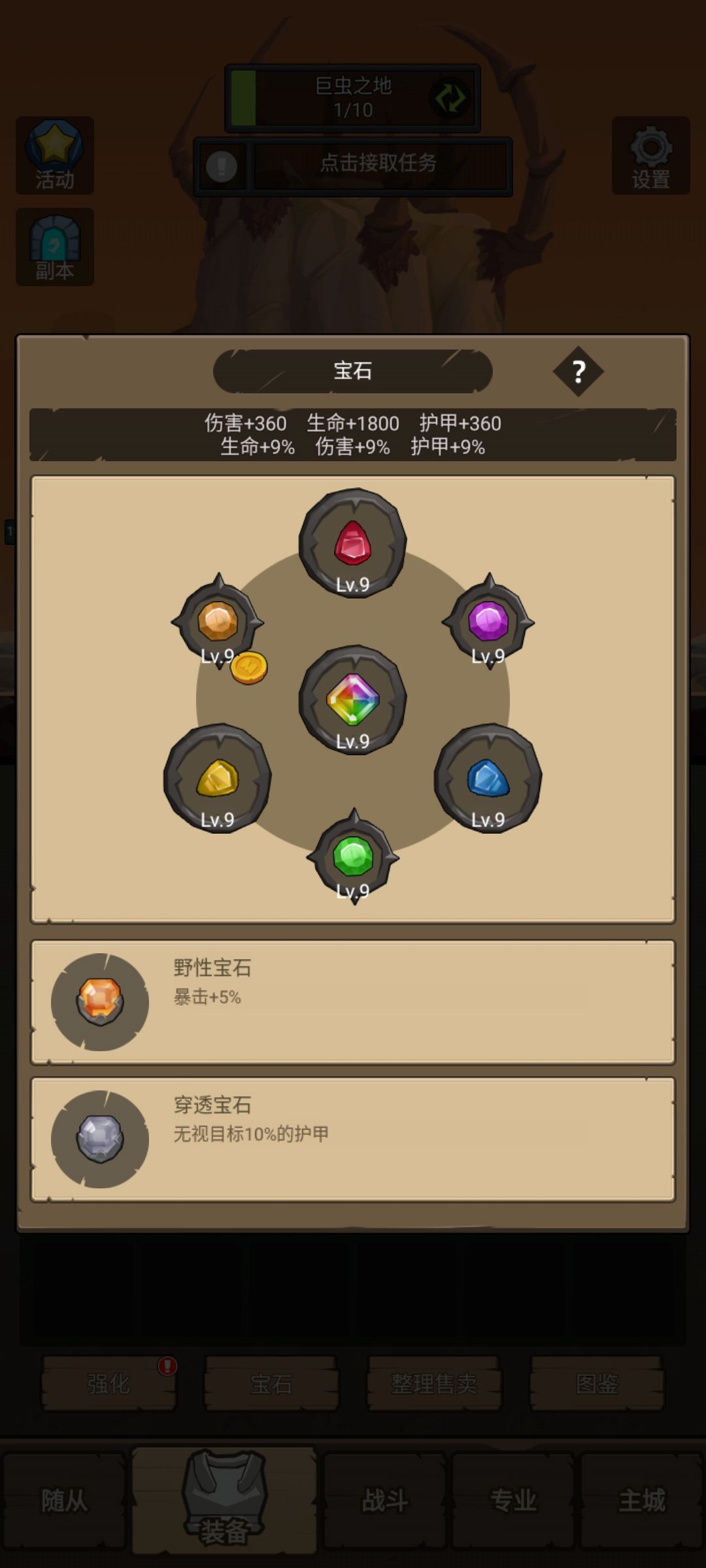 强化尽量搞,宝石等级尽量搞,野德需要这些。