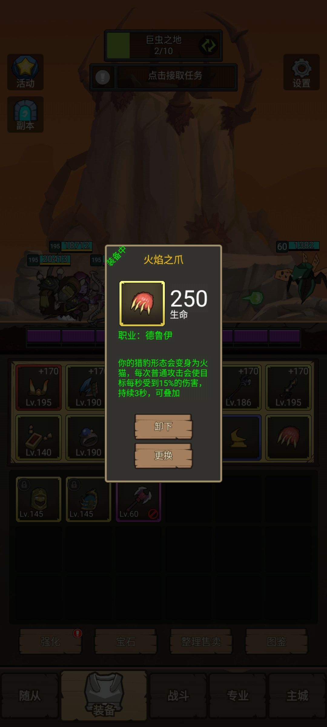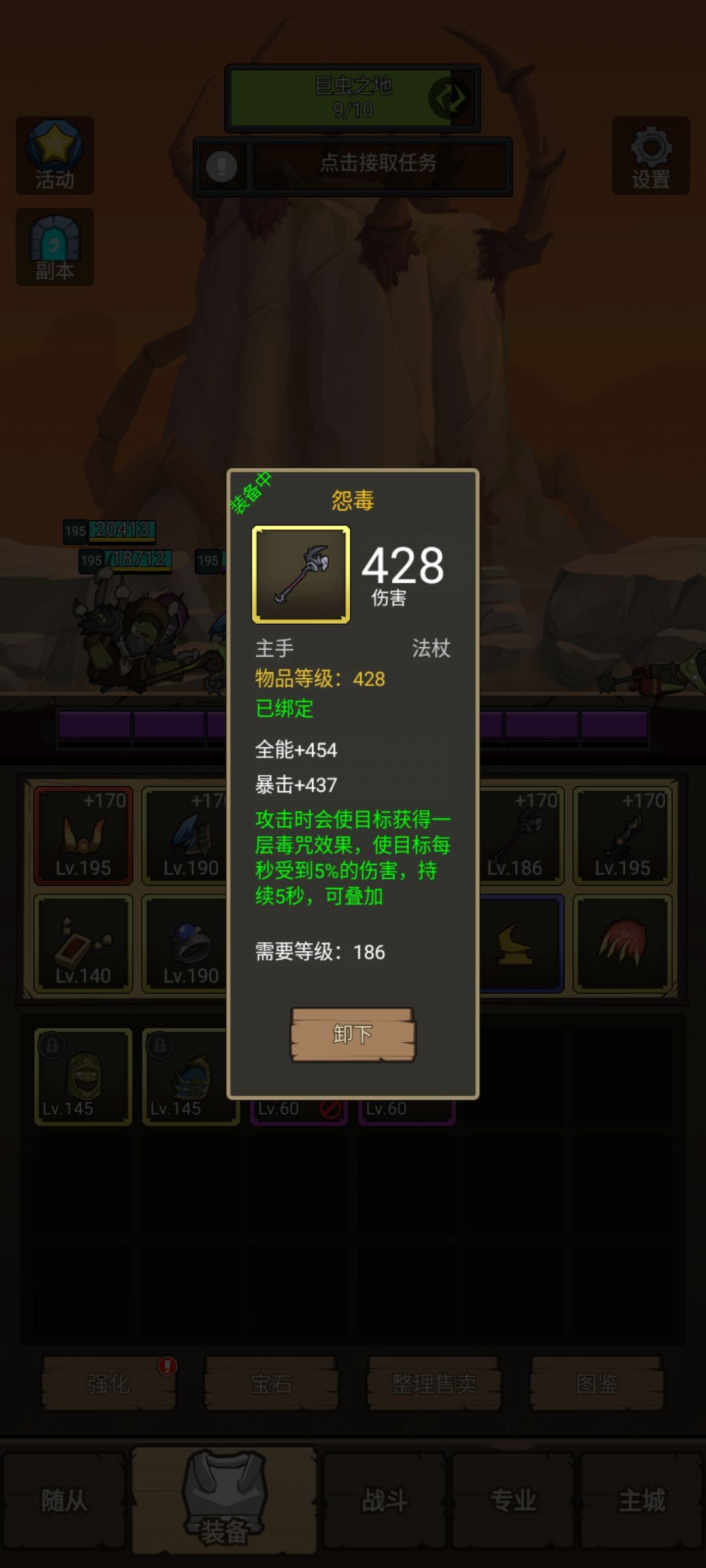 武器:190级怨毒法杖+195级火鸟之锋匕首,提供两个dot。
