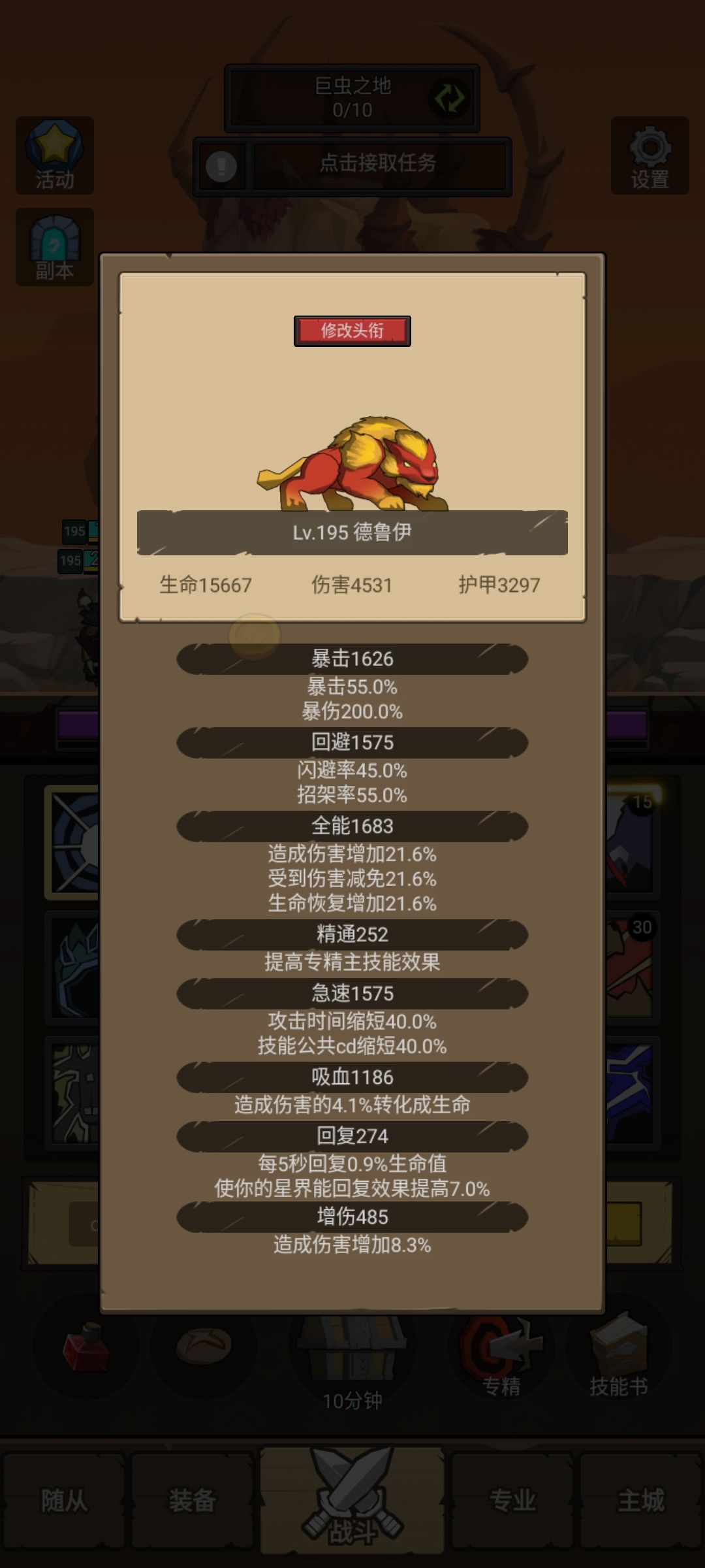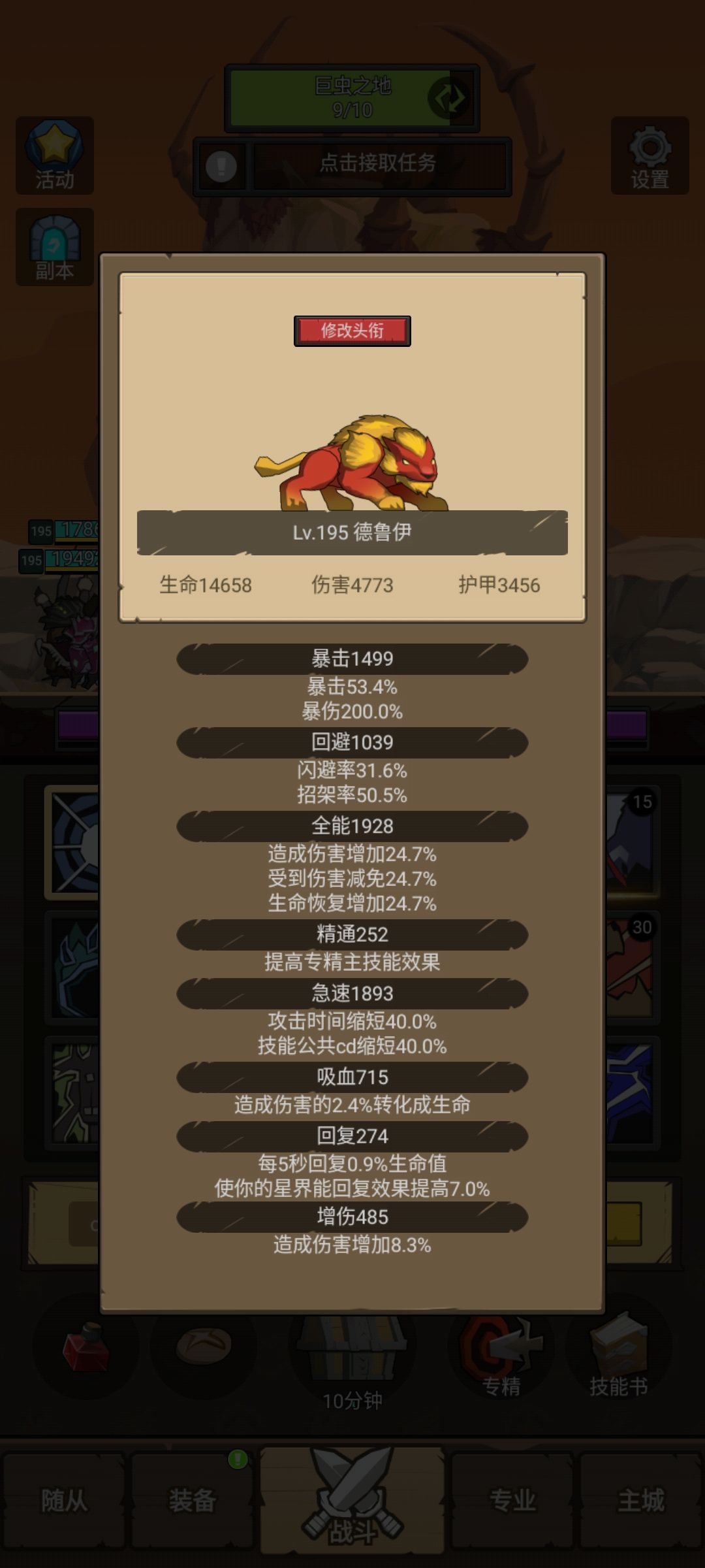 说完以上的小技巧,再给新手朋友普及一下野德属性的要求(如果有不同意见大家可以评论区一起讨论),暴击要满1600左右,回避要满1600左右,全能尽量高,精通没用,极速满1600左右,吸血1000左右,回复没用,增伤如果有的话最好全转到全能。