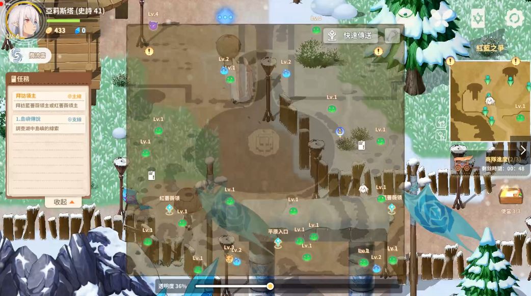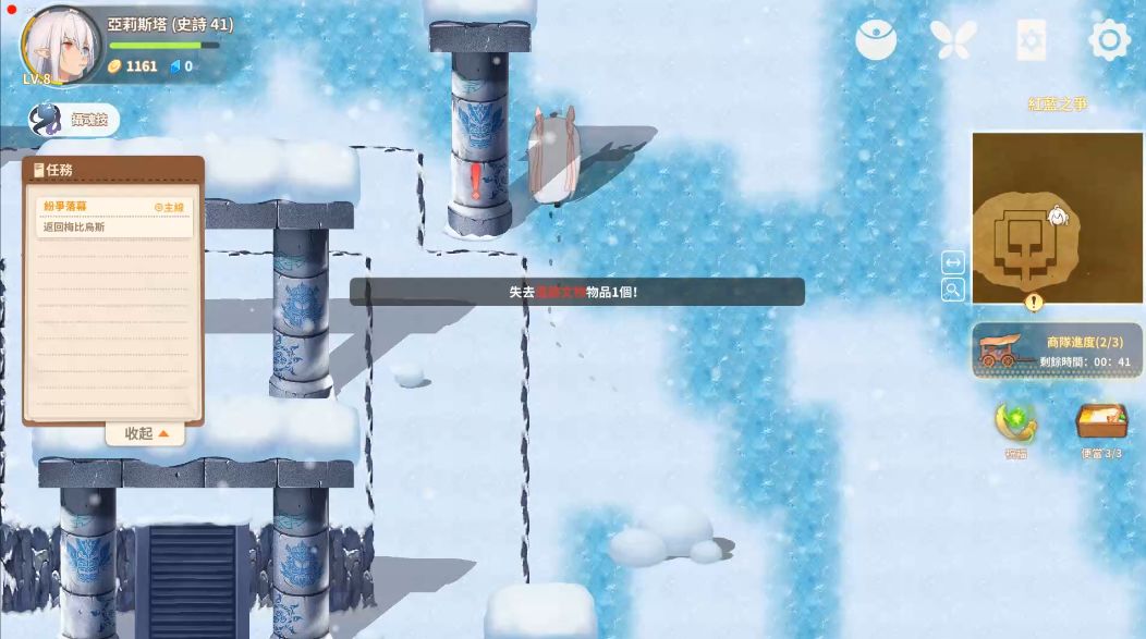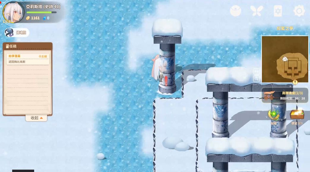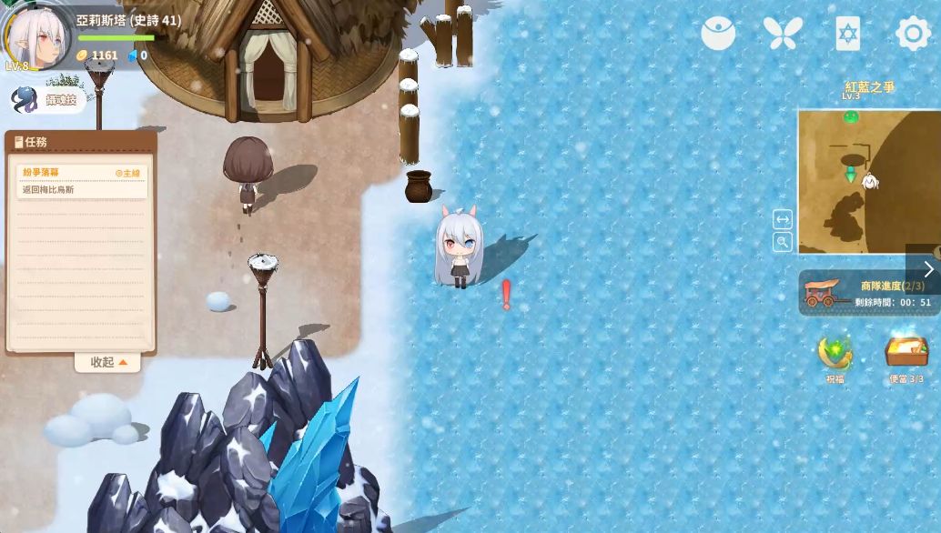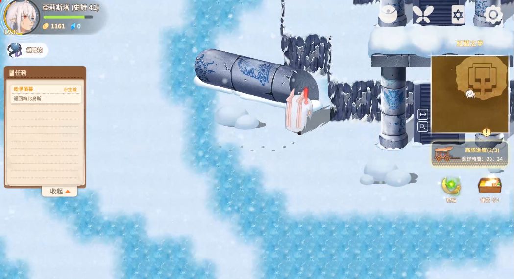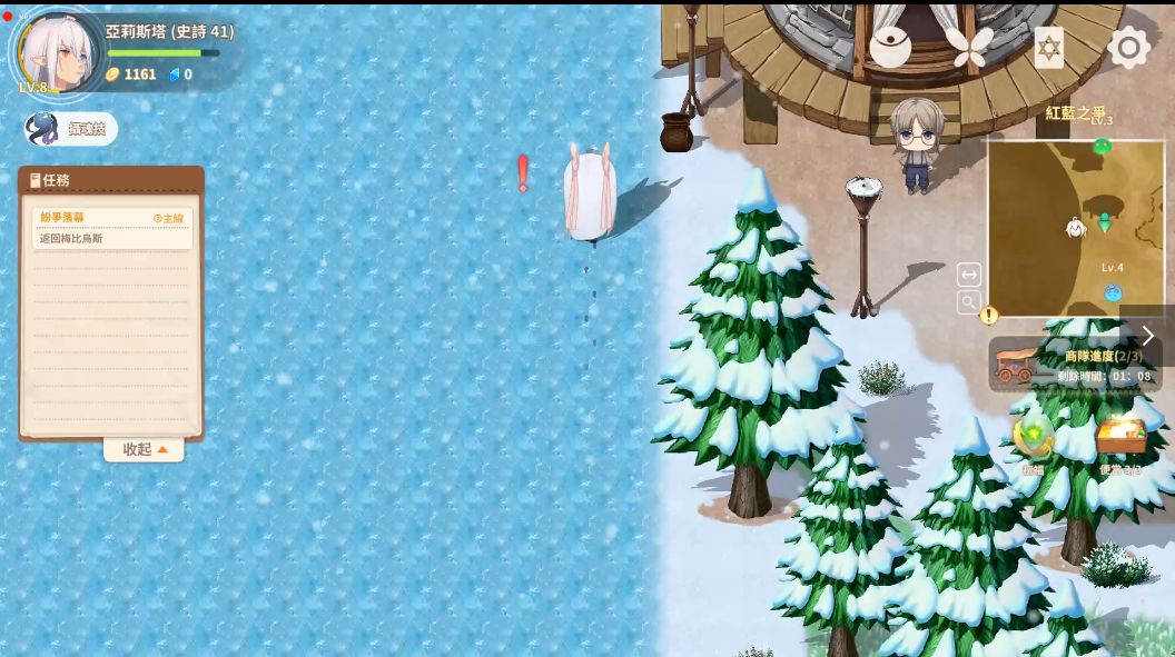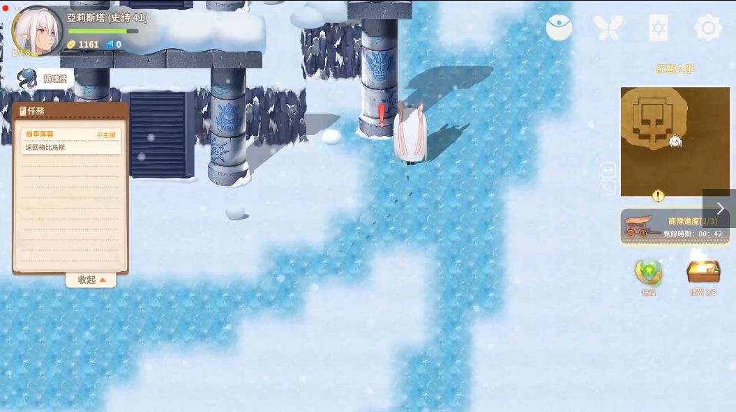 在右侧蓝村庄处完成岛屿传说,然后等待湖面结冰(推进主线)。