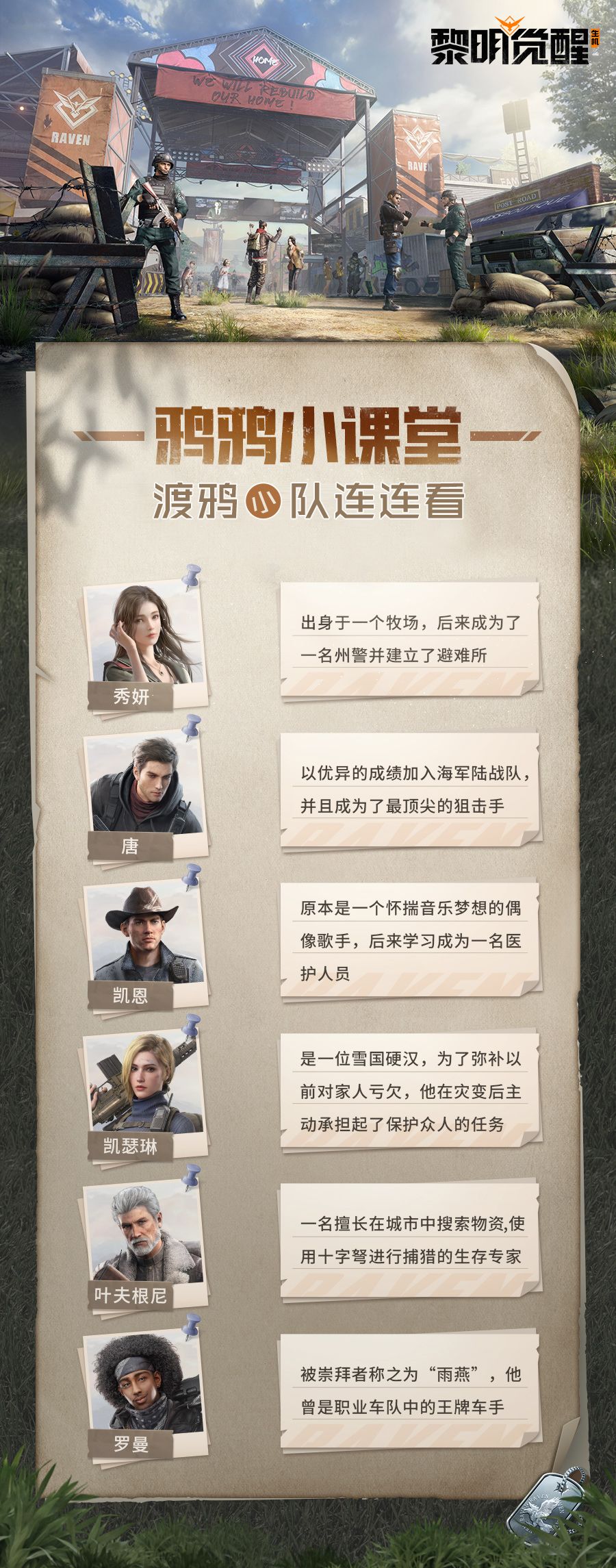 渡鸦小队的成员在不同领域有着各自的生存技巧,