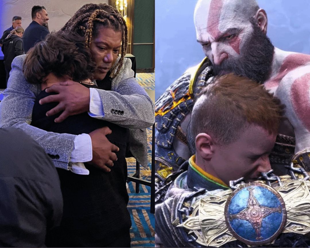 DICE颁奖现场《战神诸神黄昏》奎爷父子演员相拥 再现游戏一幕