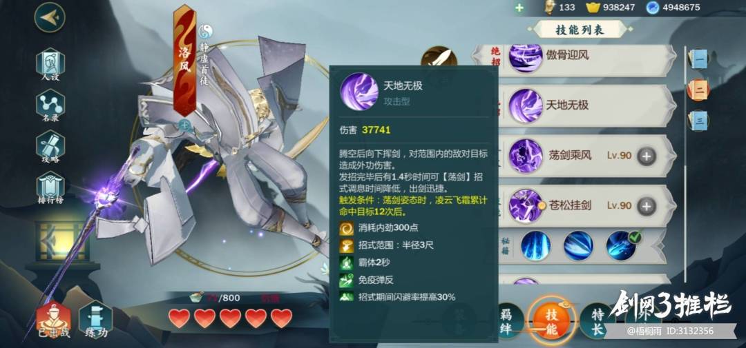 最主要的有两点,一是天地无极施展的速度加快,二是一技能苍松挂剑三秘籍的10%增伤,不过这个增伤在失去了苍松原本伤害的情况下,其实增益并不明显