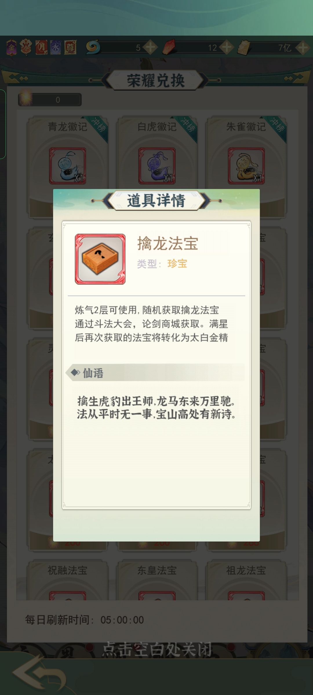 4:斗法第一了,奖励应该怎么用:首先,如果你能稳定保持第一的情况下,上一境界你升上去存在打不赢的对手,那可以优先开一开擒龙箱子。目的是为了果面的龟壳跟赎命钱2个强力法宝。太白的兑换,我个人是开上几天法宝箱子再换一波太白升星,从而进行滚雪球。箱子不建议攒,早开早享受,早开早滚雪球。第二就是,你急着冲级,斗法荣耀就全换青龙徽章,在拿第一的情况下,斗法一天能兑换几百个青龙徽章。今雪升得越高,境界升得越快。