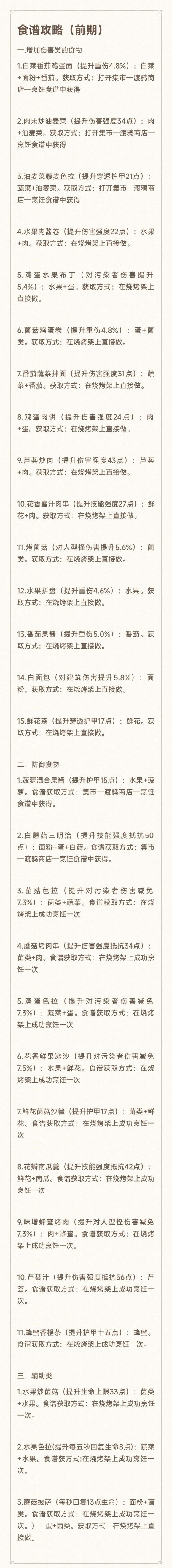 1.白菜番茄鸡蛋面(提升重伤4.8%):白菜+面粉+番茄。获取方式:打开集市一渡鸦商店一烹饪食谱中获得