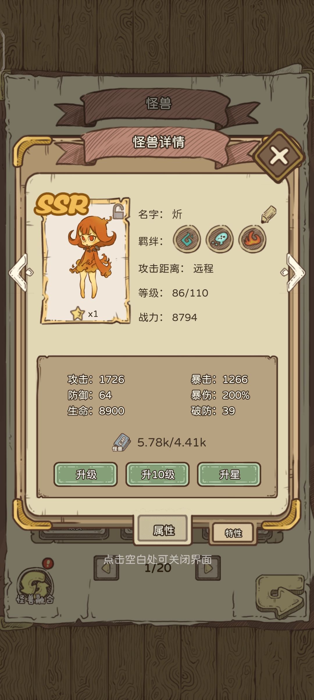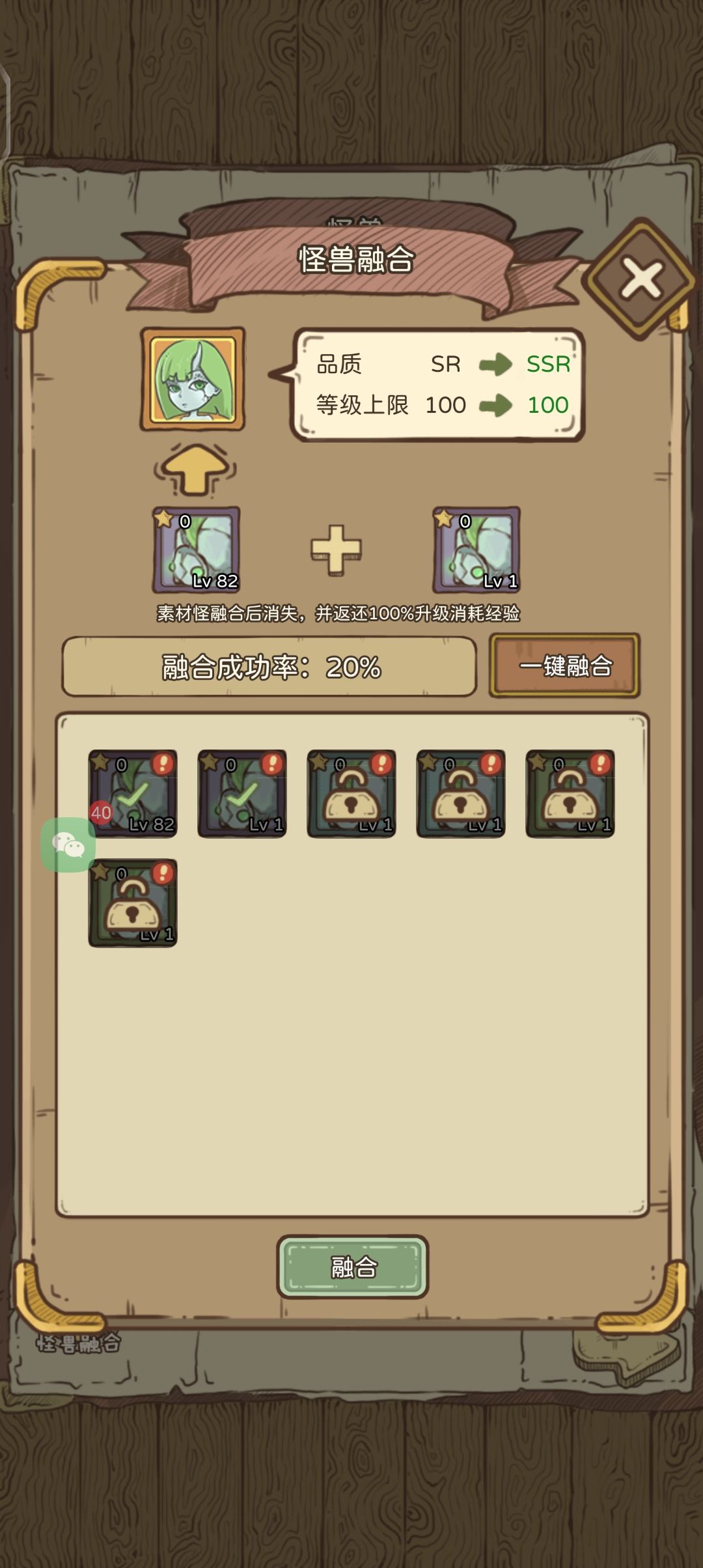 还有如果想升级想要的怪兽可以存几个sr当垫子,这个可能会失败,一般存5.6个就差不多了,然后前面5个失败,那么第6个你想要的或者第5个你想要的,就大概率合成成功了,这个要耐心和运气,我觉得如果一直不出想要的怪兽的可以试试
