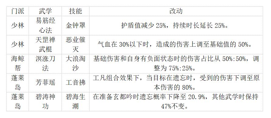 在2023.1.18日更新中,有几个门派绝学迎来了技能效果的变动,以下是具体变动。