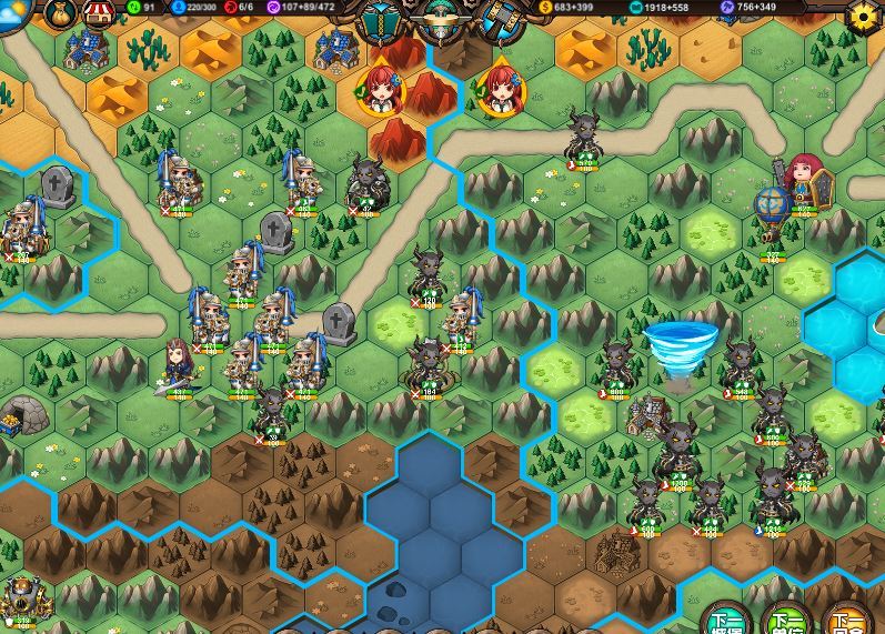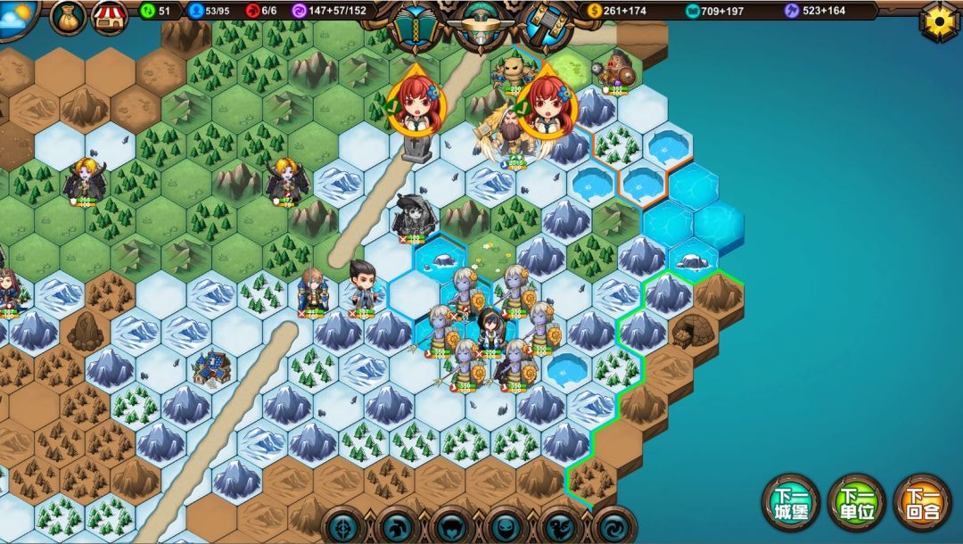3、一个山谷图优秀的防守措施,一个防御者蹲在山间小路口,把最前面的小兵晕住不杀,两回合给她加一次血,后面一整队敌人都走不动挤在那干着急,比蹲城堡被四面围攻好守多了。