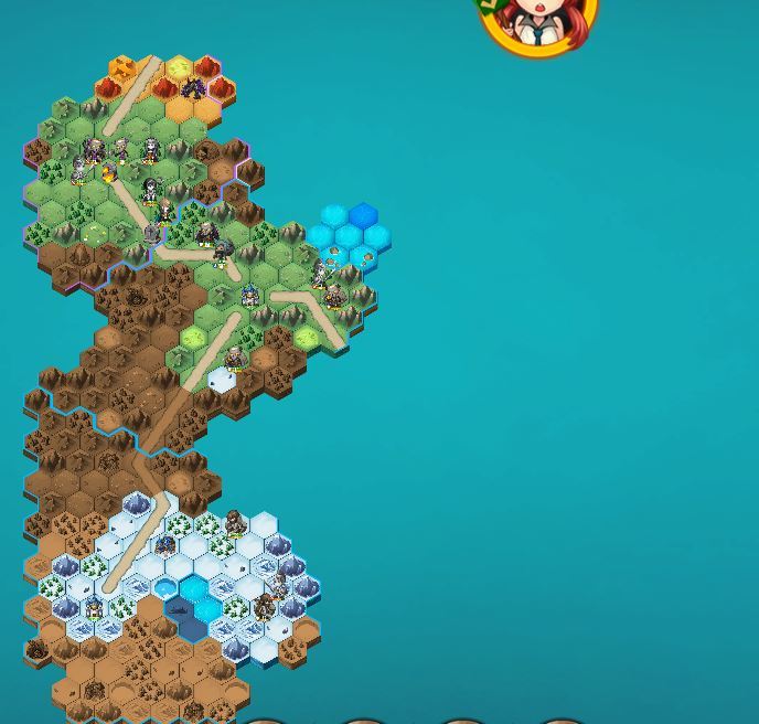 1、出女剑带三个小步兵,随到的地方只有一条路,直接沿路开荒就完事了。几回合探索下来,很容易的明确了自己位置处于左下最角落,右侧是山脉,可以说是完全不用怕偷家的地形了。