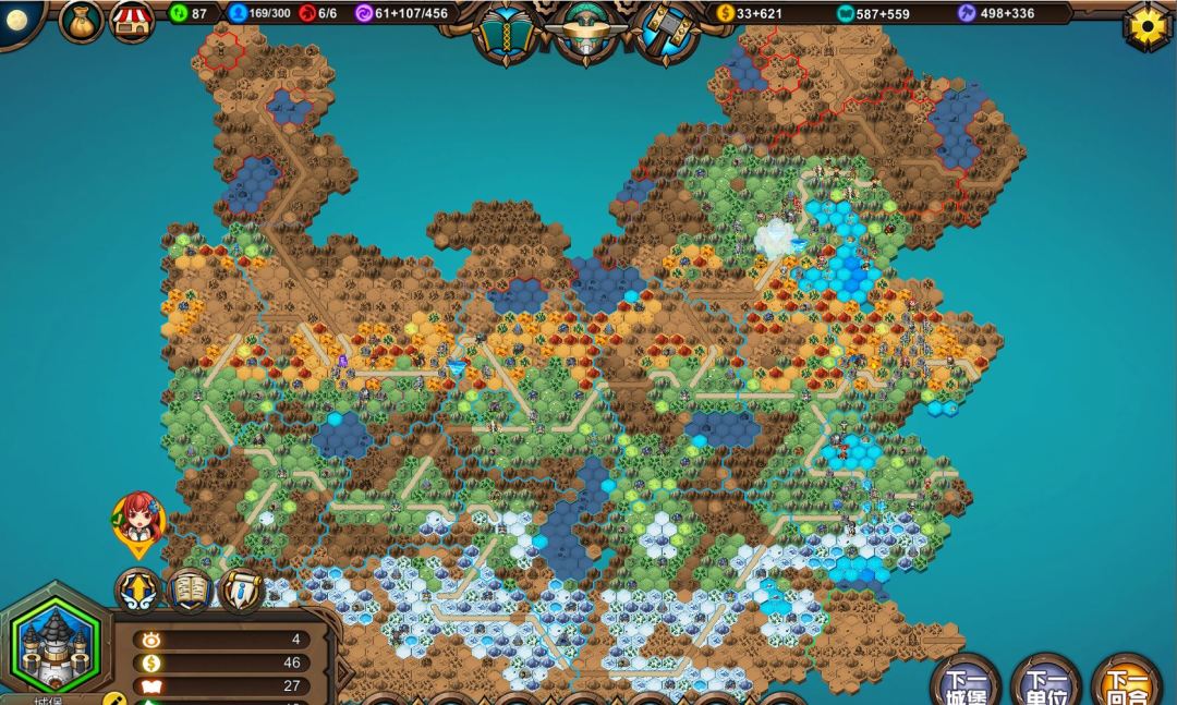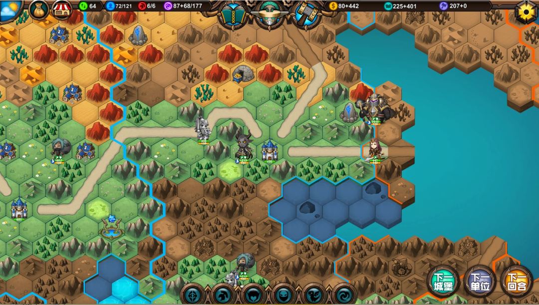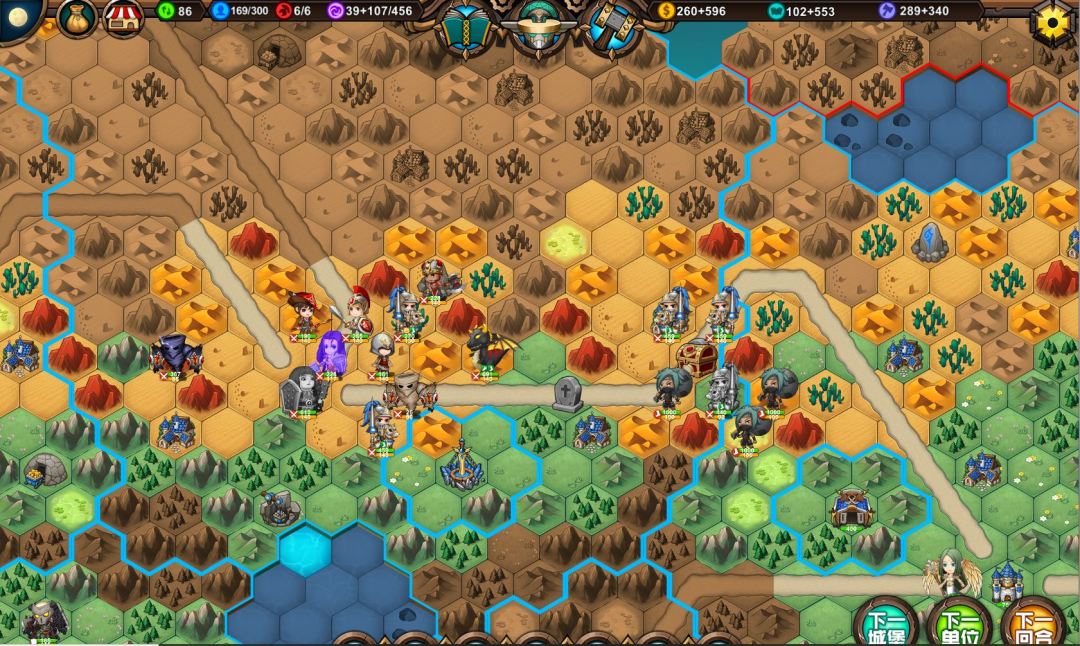 2、由于副城选的是中心位置,所以骑士北上攻城真的很远很远,尤其是到处是山地树林,事后也证明这是个错误的决定。