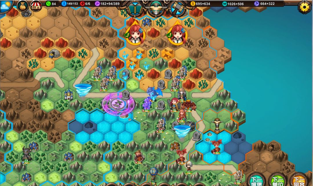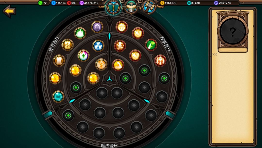 114回合,绿色灭掉了,触发事件获得年迈骑士,全图魔法学院升满。