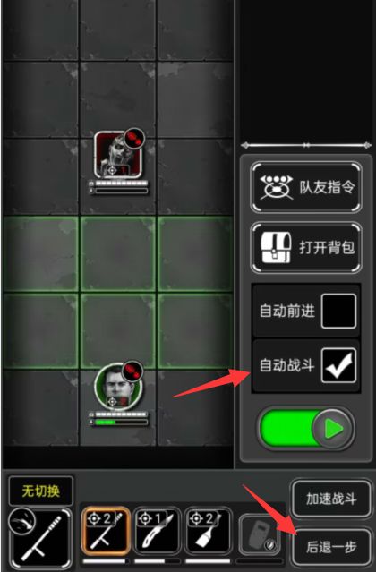 2.有长矛了1-2级僵尸就可以打了,游戏中只有人物移动或者做操作了才会开始计时,算是个回合制游戏。在攻击的时候不要点【自动前进】,而是等着丧尸过来,等他踏入攻击范围的时候刚好【行动值】消耗空了,而自己有一半行动值,所以自己会先攻击,攻击完成后如果没打死点击【后退一步】,这样怪物要攻击了发现你退了一步,只能往前走把行动值消耗空,反复如此,大部分武器打中后丧尸会持续流血,这样可以无伤打怪。在遇到很难打的怪