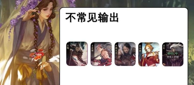 定的普攻输出(马超)>稳定的物理输出(关妹)>稳定的谋系输出(月英)>不稳定的普攻输出(SP太史慈)>不稳定的物理输出(弓吕)>不稳定的谋系输出(大乔)大乔在前20级带什么战法都是个演员,三清系前期主要靠月英