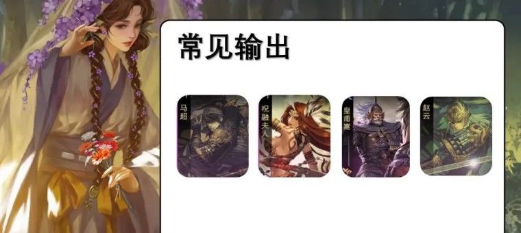 除了上述提到的马超祝融张绣赵云(张绣是前锋,负责主要输出),还有一些武将也可以作为大营,例如