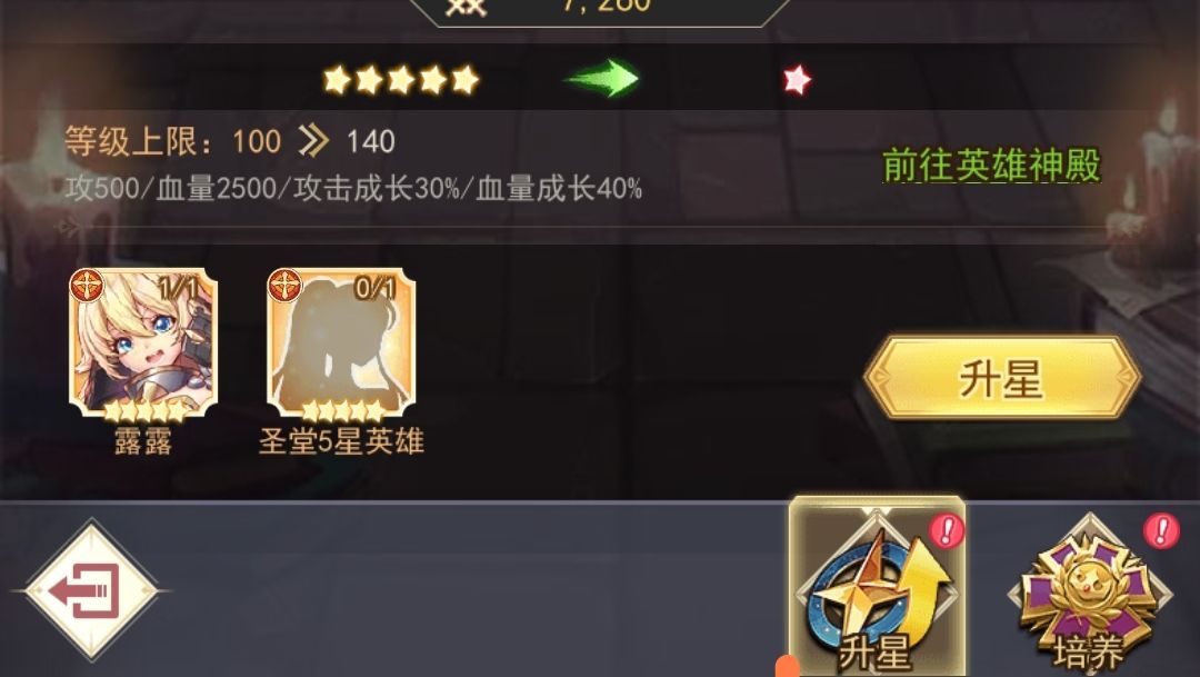 我们首先有一位初始的5星英雄本体1个,对其升星