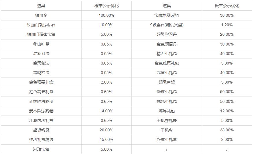 3、玩家通过完成活动任务获取活动经验对铁血武林令“升级”,铁血武林令升级后可以获得奖励;