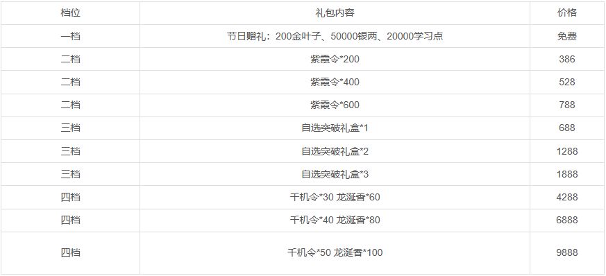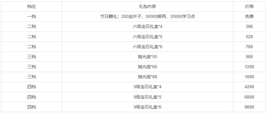 活动一:活动期间将限时上架节日礼包,礼包内容如下:
