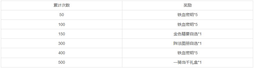 3、每次开启铁血秘宝必得【铁血令】,同时获得4件奖励;