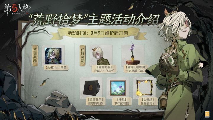 “荒野拾梦”主题活动将于3月9日维护后正式开启,与“枯叶”一同找寻梦中的花朵吧~