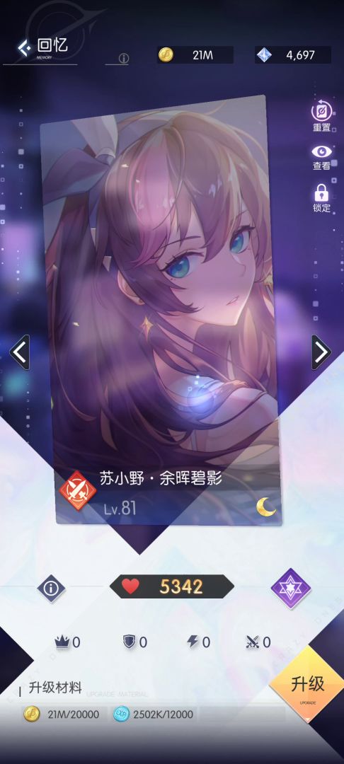 2.需要苏小野前路星辰这张紫卡81级就可以了。