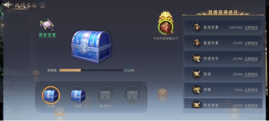 在内政厅中每3小时获得一个宝箱,最多可同时拥有4个宝箱,获得宝箱的品质随机,但不论任何品质的宝箱都需要30点政绩值打开。