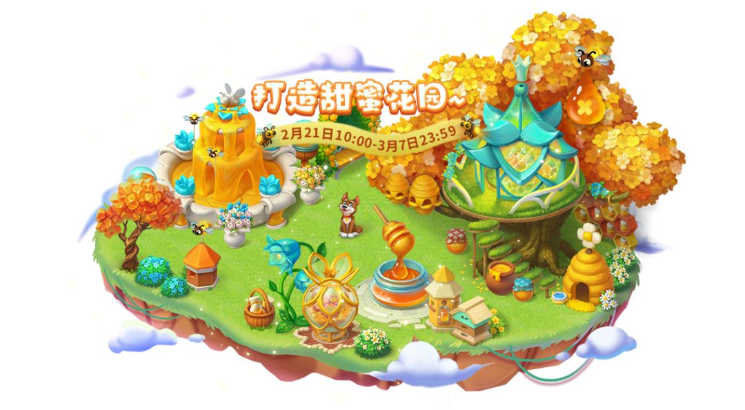 秃秃这就带大家一起品鉴一下闪耀甜蜜光芒的蜂蜜节限定版花园