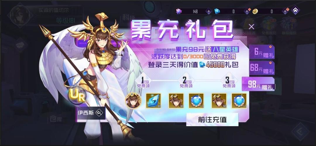 就可以分三天领取价值💎16800礼包以及UR角色一个!