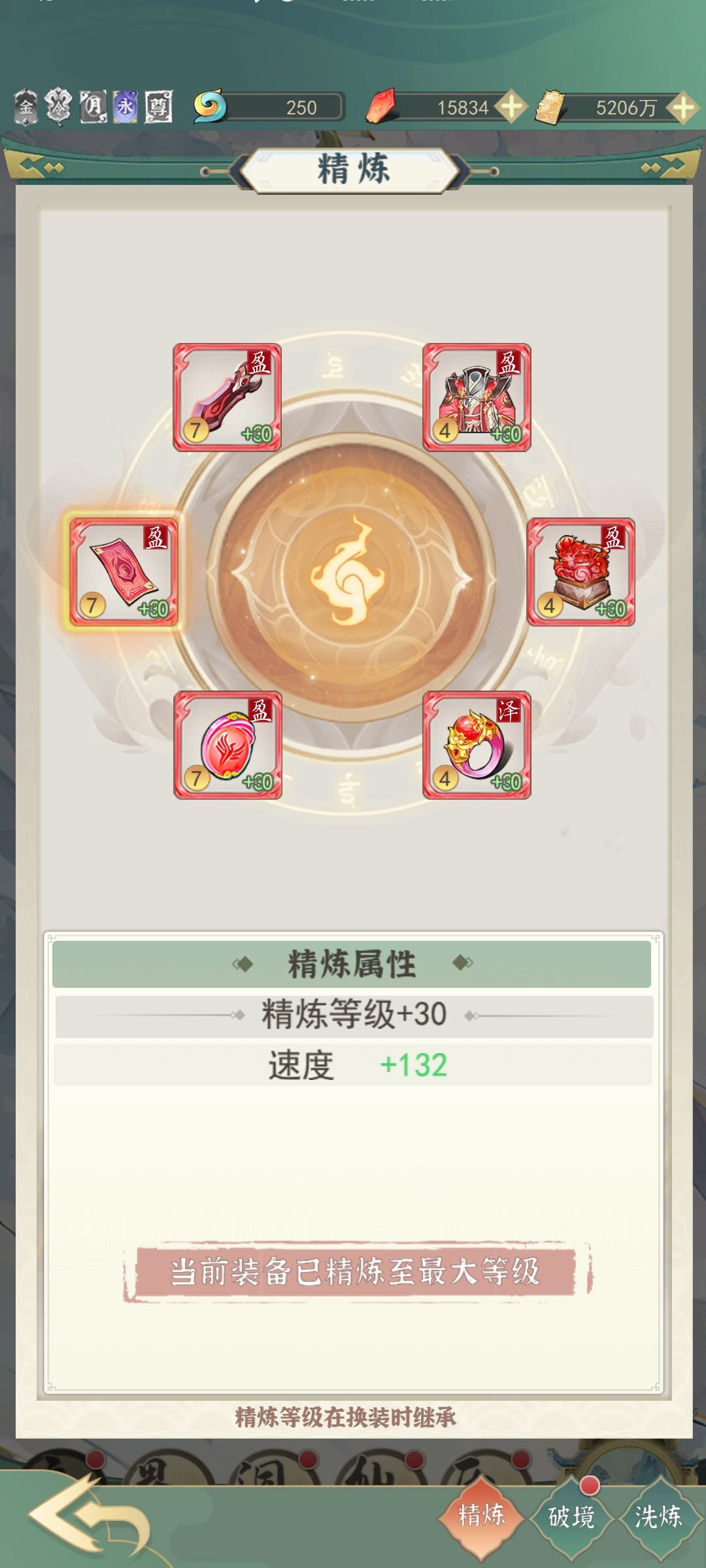 装备精炼破镜机制优先升级攻击速度生命,这个游戏最重要的属性就是攻击速度生命,其他3个装备有多余玉髓可以精炼,但破镜尽量跟攻速生相差3级,优先级:速度>生命>攻击。洗练也尽量洗这3个属性,没到冲虚之前可以不洗练