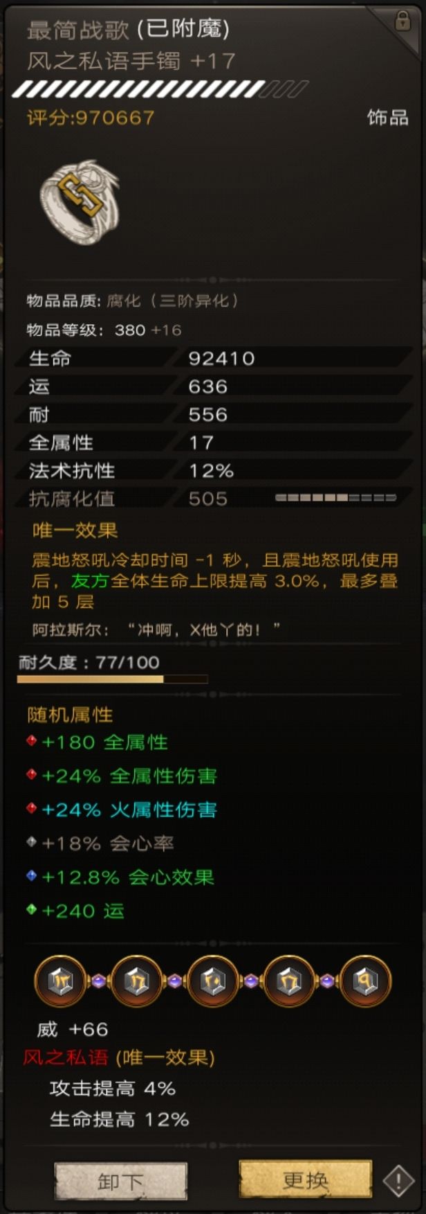 考虑到我们BD的过渡属性,我更建议使用三阶异化五连孔,而不是花费更多资源打造四阶异化装备~
