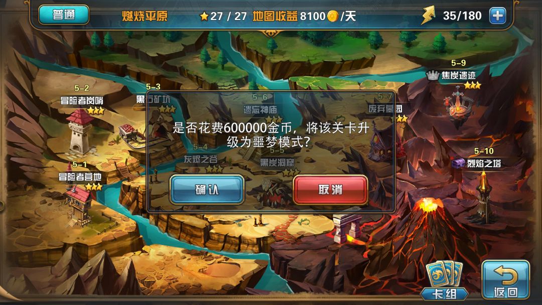 普通地图1~6可以切换成噩梦地图,玩家只需点击左上角的图标变可以进行切换,但需要一定的条件(玩家们自行查看)。普通地图切换成噩梦地图后无法还原。