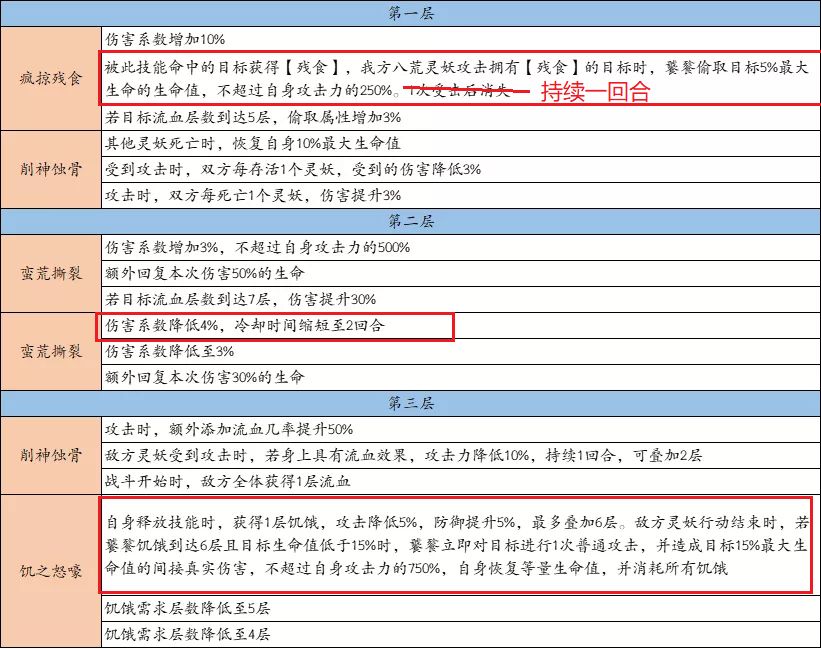 这个被动在触发后的一回合内能被八荒队友多次触发,不论是普攻或技能,偷取血量的同时为自身恢复状态。并且在有灵枢加持的情况下,饕餮的技能循环极优秀,没有真空期。所以只要不被秒,饕餮就能一回合满状态,是坚实的前排堡垒。灵枢要求211,灵印推荐牛金牛或碧水瑜