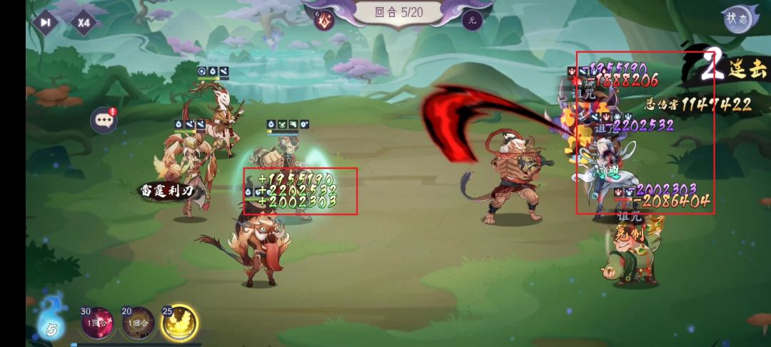 由于部分灵妖缺失,所以这只是一支临时东拼西凑的测试阵容,其中当康应替换为夔牛。测试章节为40-32,双方战力比为1333w:9045w,越战6.8倍,不存在战力碾压的情况。